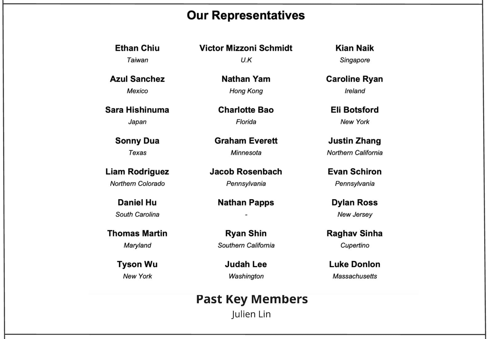 Over 80 students collaborate remotely through 15+ branches across the USA, Taiwan, Singapore, Mexico, the U.K., Italy, and France, sharing skills in coding, finance, research, and design.